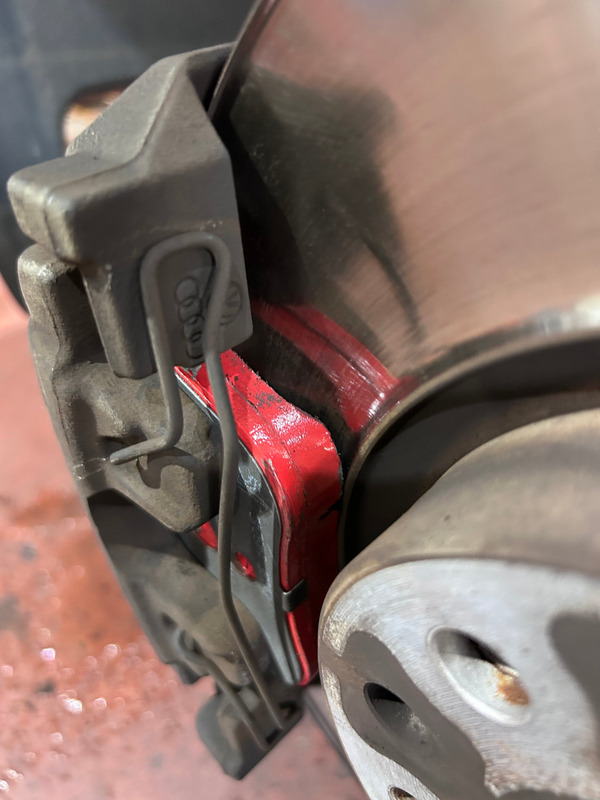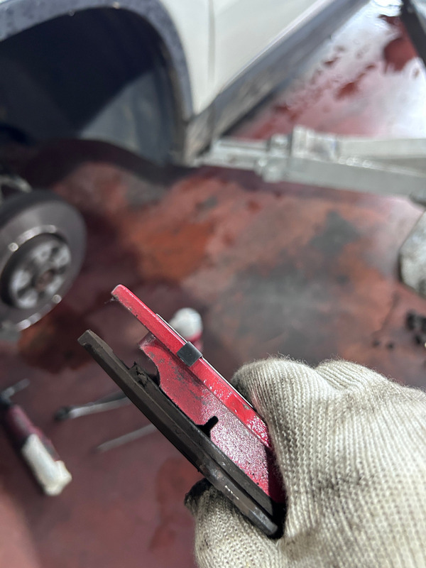 브레이크 앞패드가 많이 마모되어 있습니다.