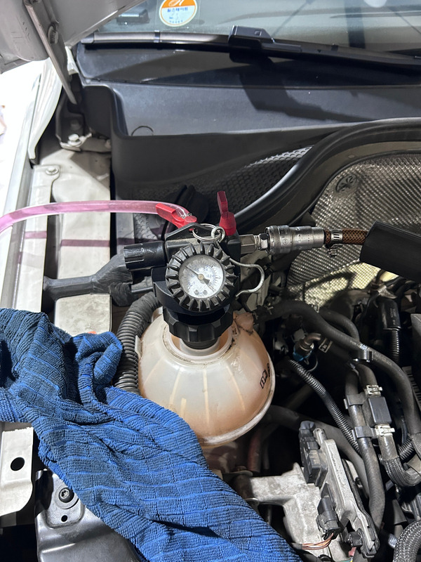 부동액(냉각수) 에어빼기후 새로 주입합니다.
